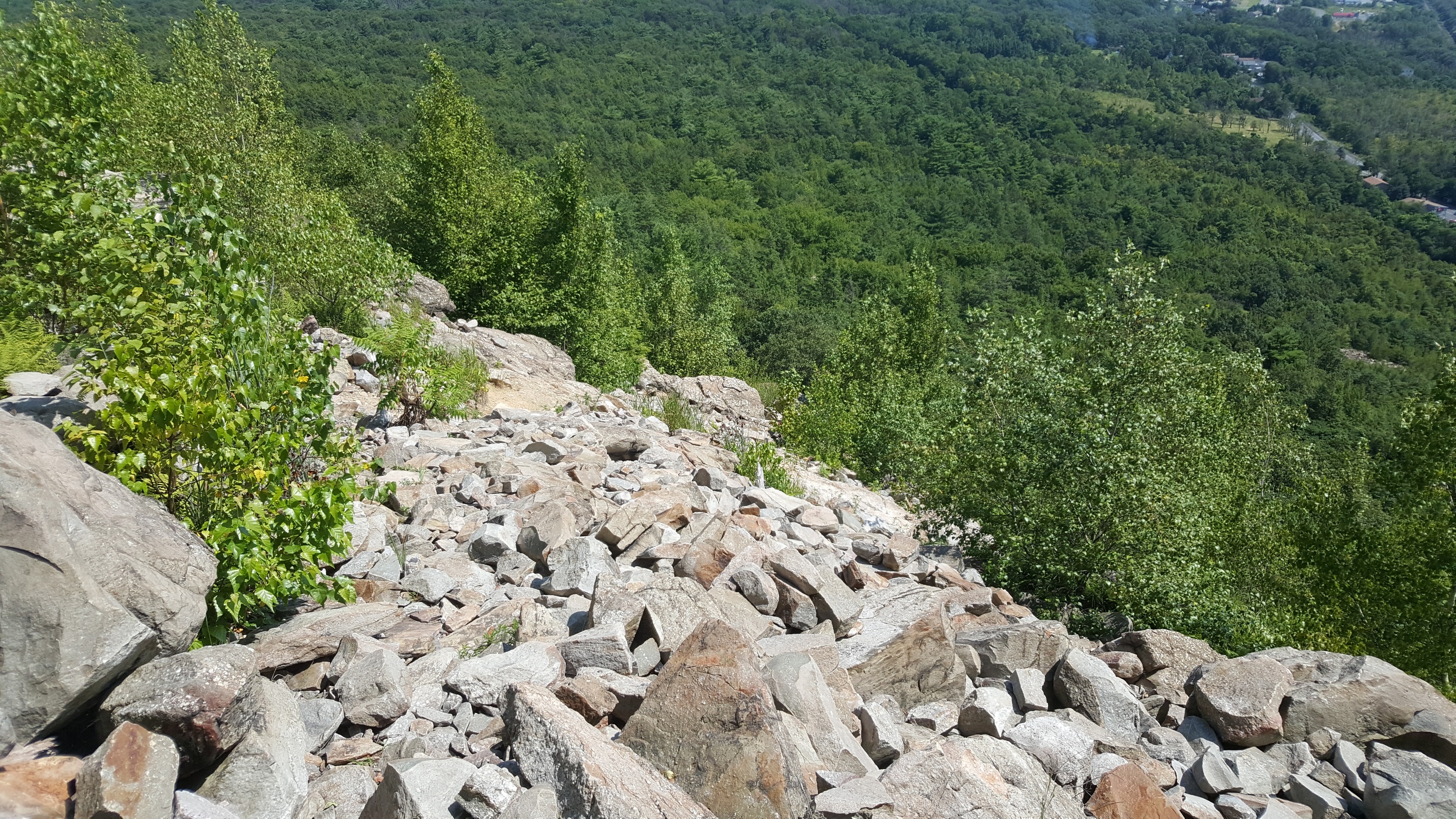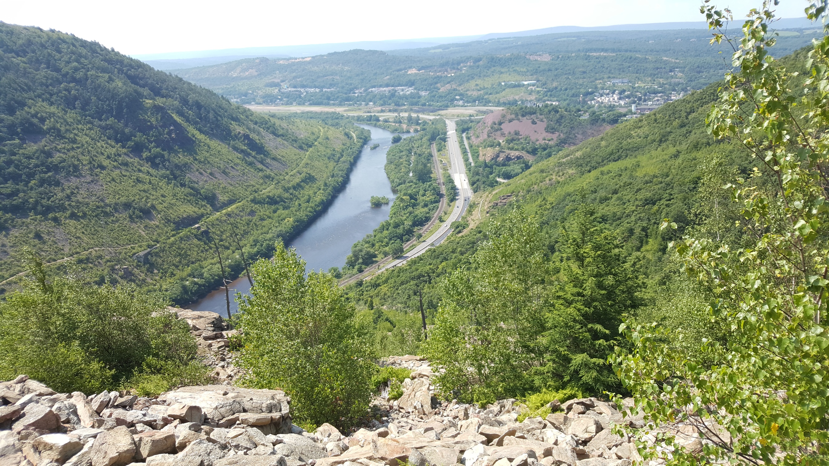 Both hikes are well documented, and I don’t have too much to add to them except complaints about the weather. Ready? Here goes. The Lehigh Gap scramble faces west with very little shade, so the rocks get very hot on a sunny afternoon. The radiant heat increases the perceived temperature and, since the scramble requires handholds, it’s very uncomfortable to the touch. In short, I would have enjoyed this hike much more on a cooler day. It is rated as difficult, the conditions made it occasionally brutal.